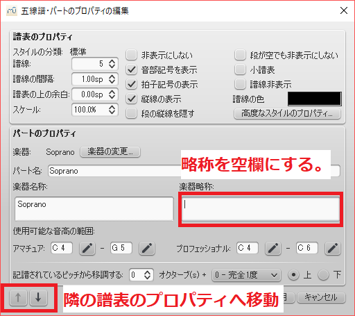 ミューズ パートの名前変更