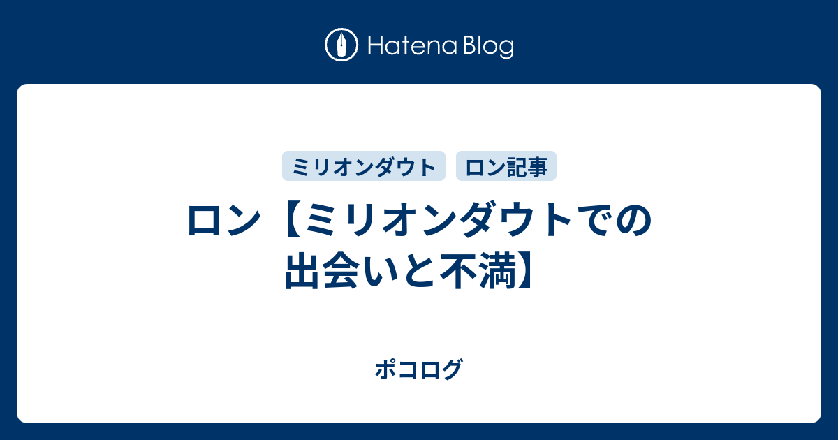 ロン ミリオンダウトでの出会いと不満 ポコログ