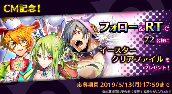 Uzivatel ルネ 公式 メギド72 Na Twitteru Cm記念プレゼントキャンペーン第2弾 フォロー Rtキャンペーンを開催中 Megido72 をフォロー こちらのツイートをrt 抽選で72名様に メギド72 イースタークリアファイルをプレゼント 詳細はこちら Https