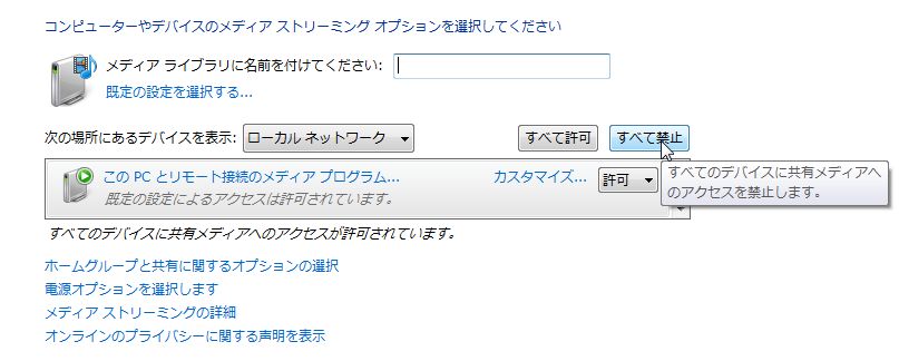 ネットワーク上で公開されている メディア機器 を無効にする方法 ちむどろいど