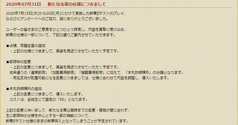 20章b後の仕様変更 戦国ixaでこの先生きのこるために