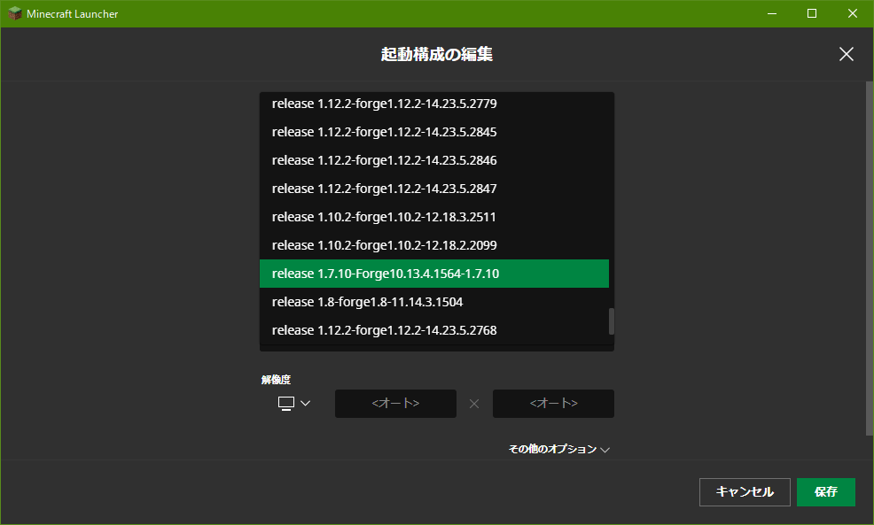 名前は自由です全角も使えます バージョンは先ほどインストールしたForgeを選んでね下の方までスクロールしてよく探そう ゲームディレクトリはとっても大事 ここを変更しないと裏ワザはできないから注意してね.