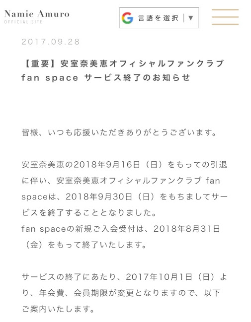 安室奈美恵 ファンスペース 名前変更