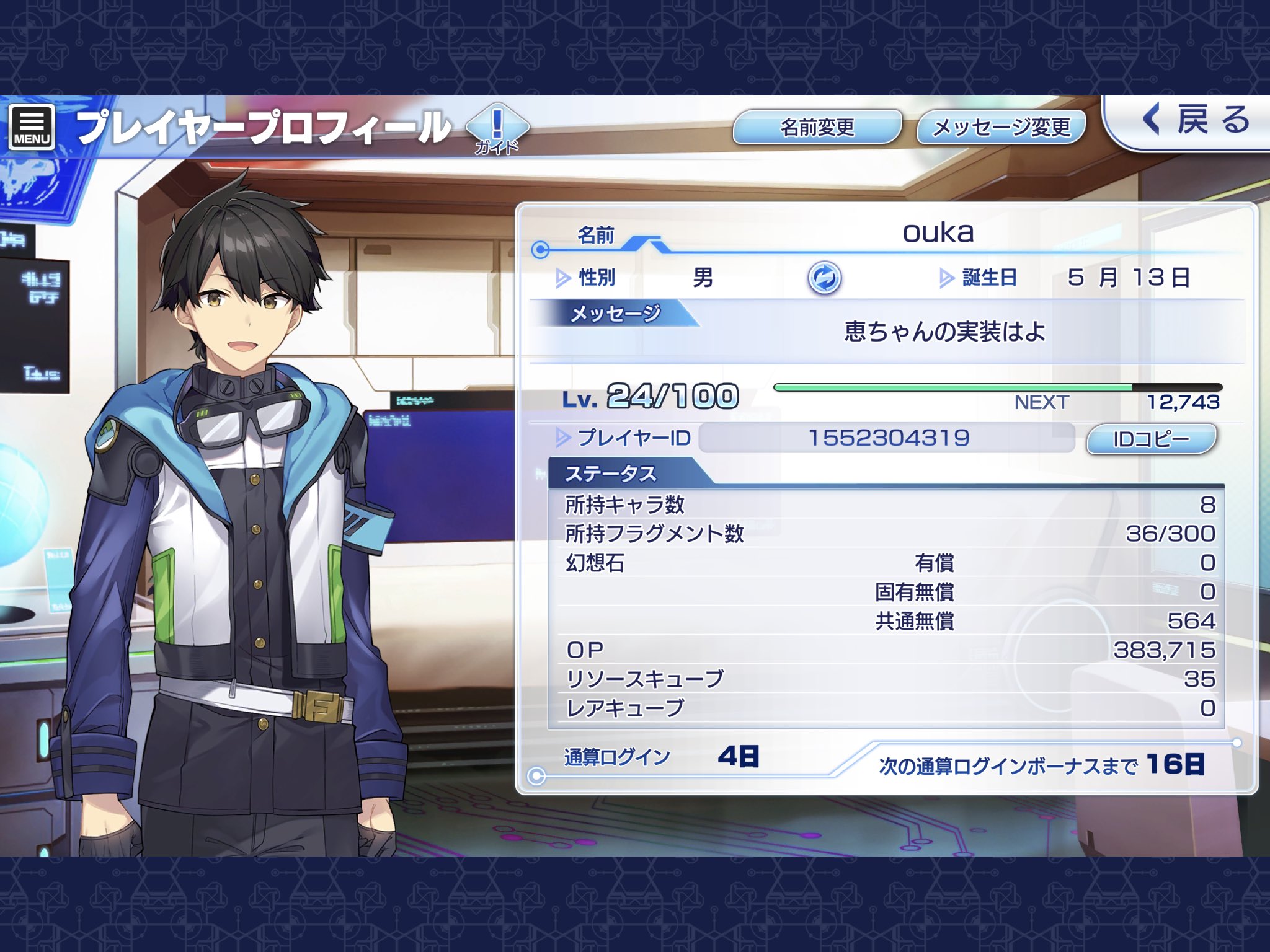 プレイヤーの名前の事とか色々と 神姫プロジェクト 青萌白報 ゲームプレイ情報ブログ
