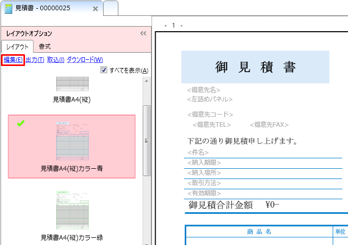 レイアウトテンプレートの名前の変更 やよいの見積 納品 請求書 サポート情報