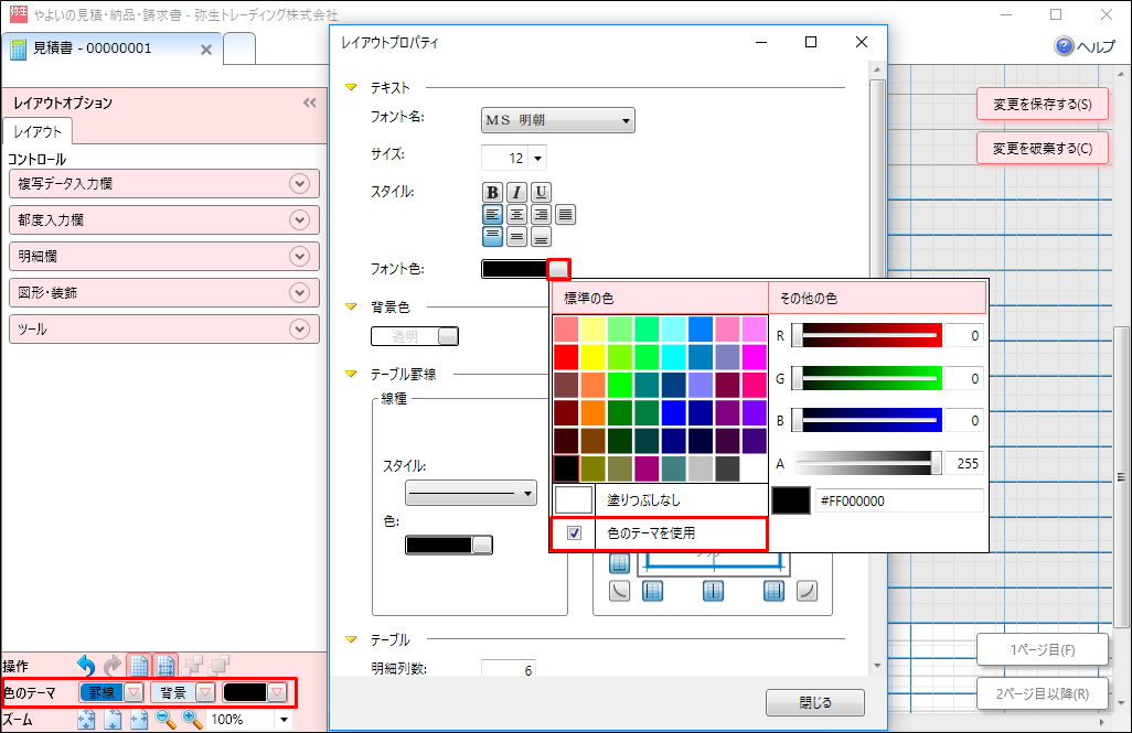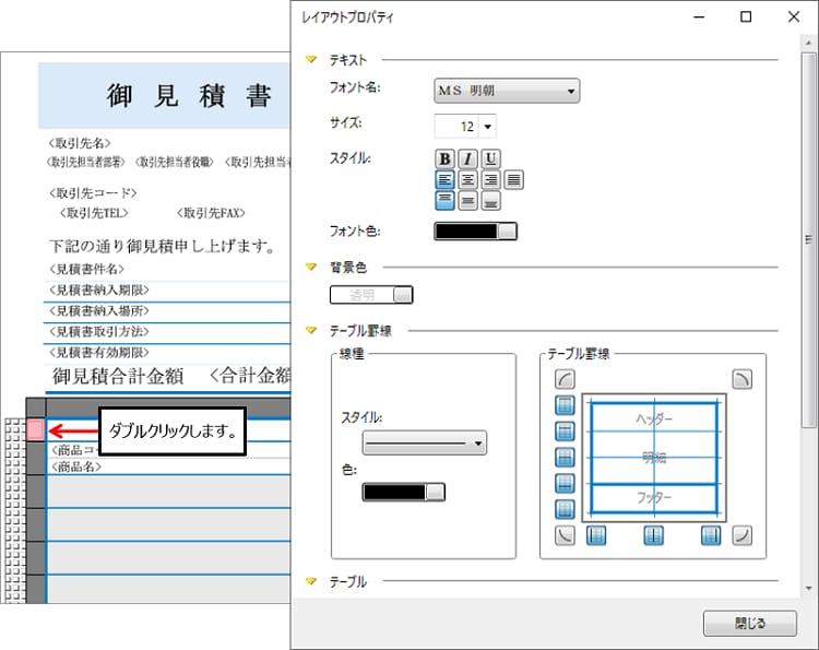 レイアウトプロパティの編集 やよいの見積 納品 請求書 サポート情報