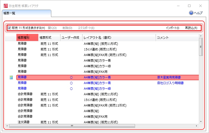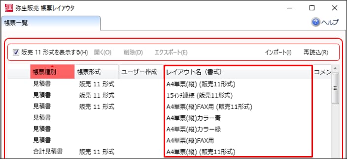 帳票一覧画面の画面構成 帳票レイアウタ 弥生販売 サポート情報