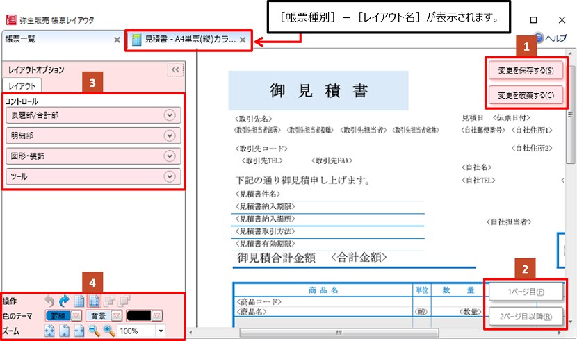 レイアウト編集画面の画面構成 帳票レイアウタ 弥生販売 サポート情報