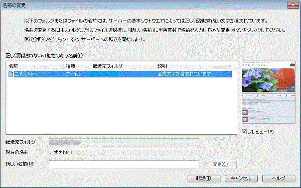 転送に成功しましたが 名前の変更ができません